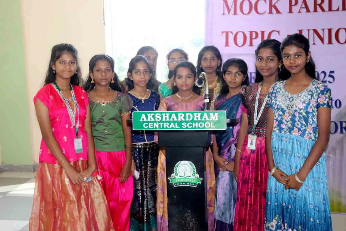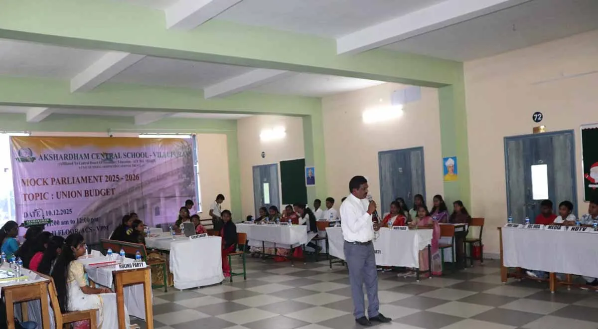 On 10th December 2025, Akshardham Central School conducted a meaningful and exciting Mock Parliament Session for our students. It was a wonderful opportunity for children to understand how our country’s Parliament works and how important decisions are discussed and made. Our students participated with great enthusiasm, taking up roles as elected members of the Parliament. The main topic of discussion was the Union Budget, and the children spoke confidently about national development, public welfare, education, and economic planning. It was inspiring to see them think deeply, present their ideas clearly, and listen respectfully to others.